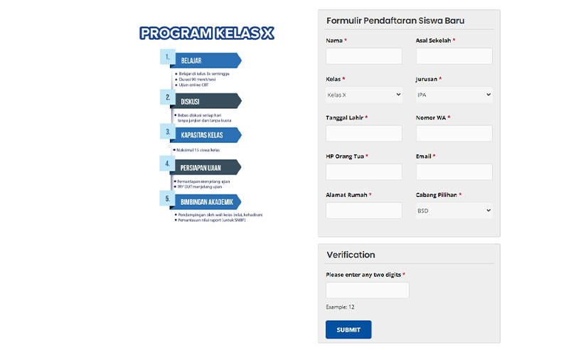 Jika sudah melengkapi formulir registrasi, silahkan klik Submit. Setelah itu kamu akan mendapatkan arahan untuk menyelesaikan proses pendaftaran siswa baru di kelas Bimbel Mitra Pelajar Pamulang.